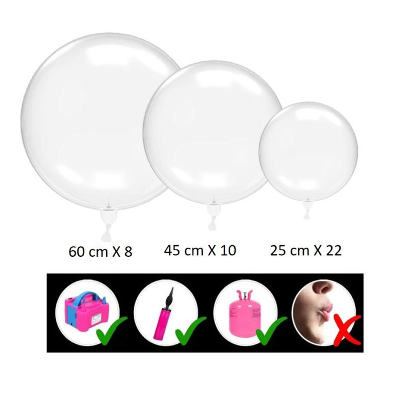 KIT 40 BALLONS BUBBLES PLASTIQUE TRANSPARENT