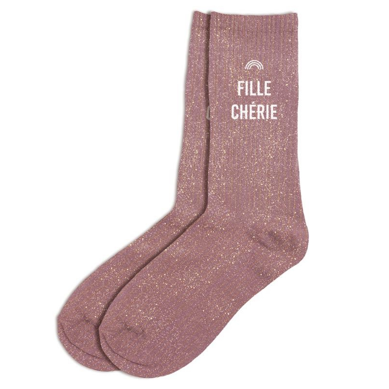 Paire de chaussettes à paillettes avec inscription « Fille Chérie ».