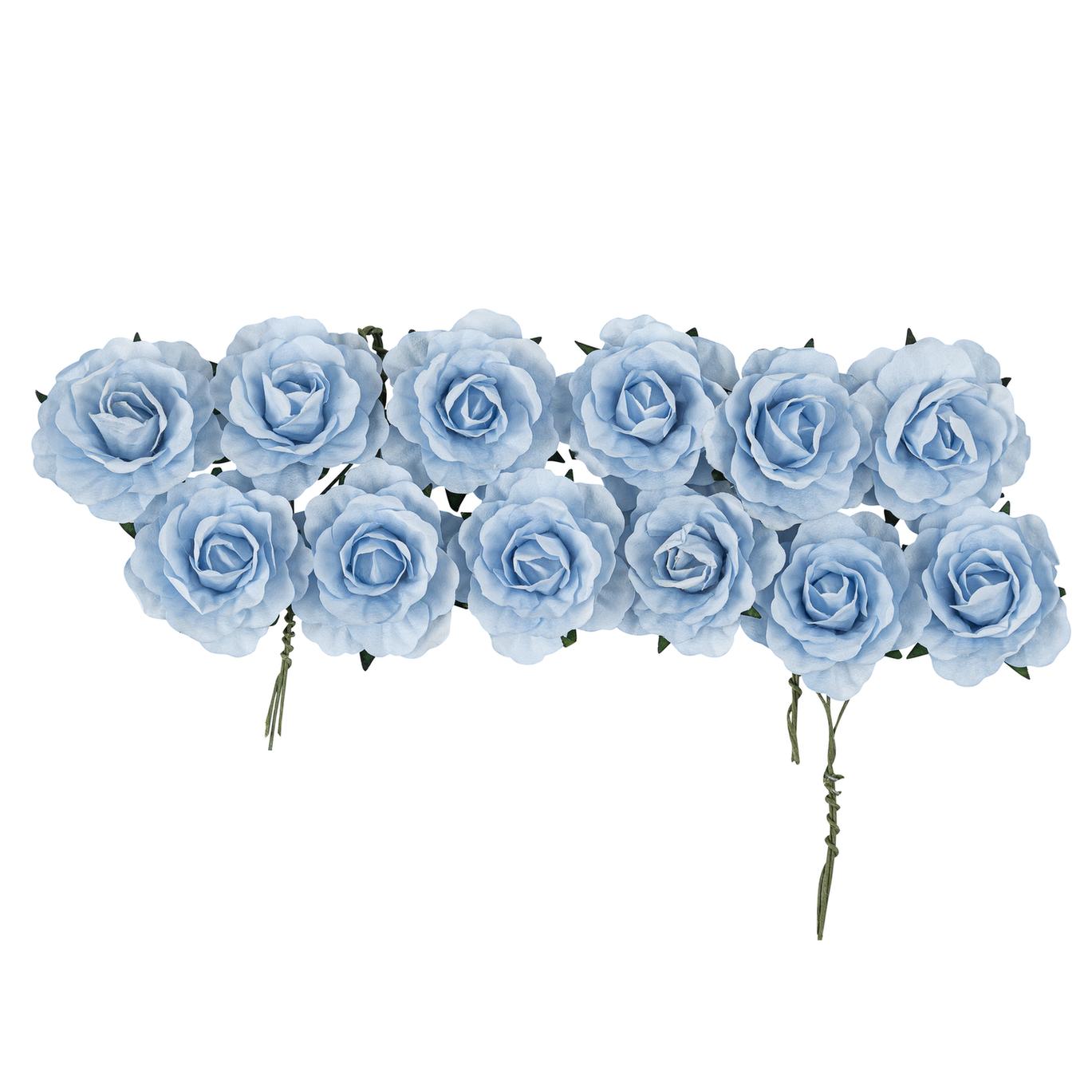 ROSES PAPIER BLEU CIEL X12 S/TIGE (3,5CM)