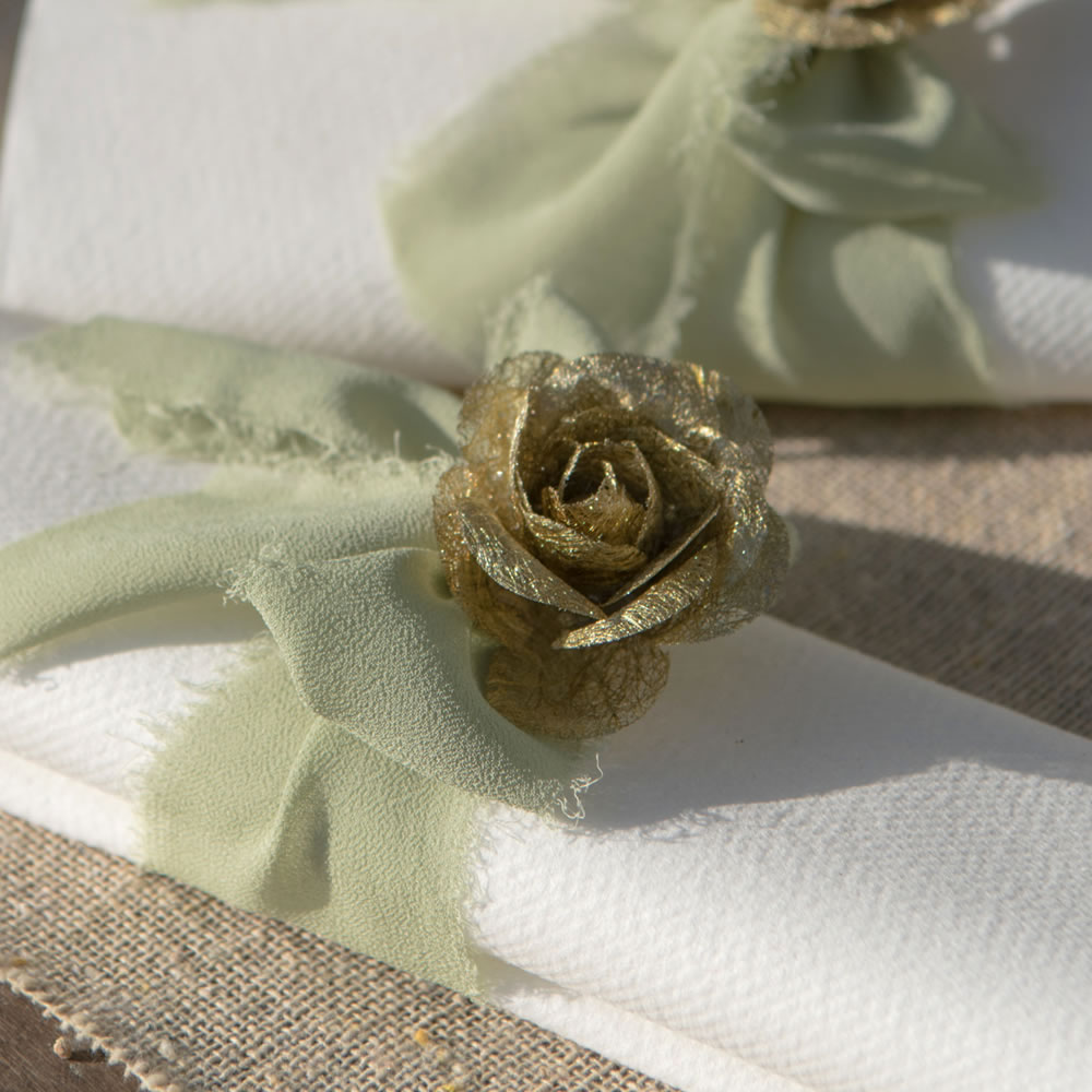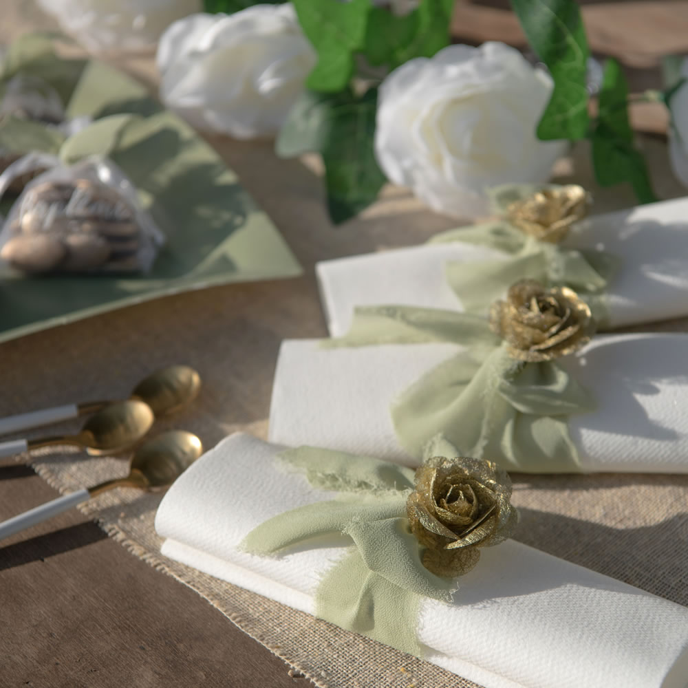4 roses en papier Or sur tige métal.