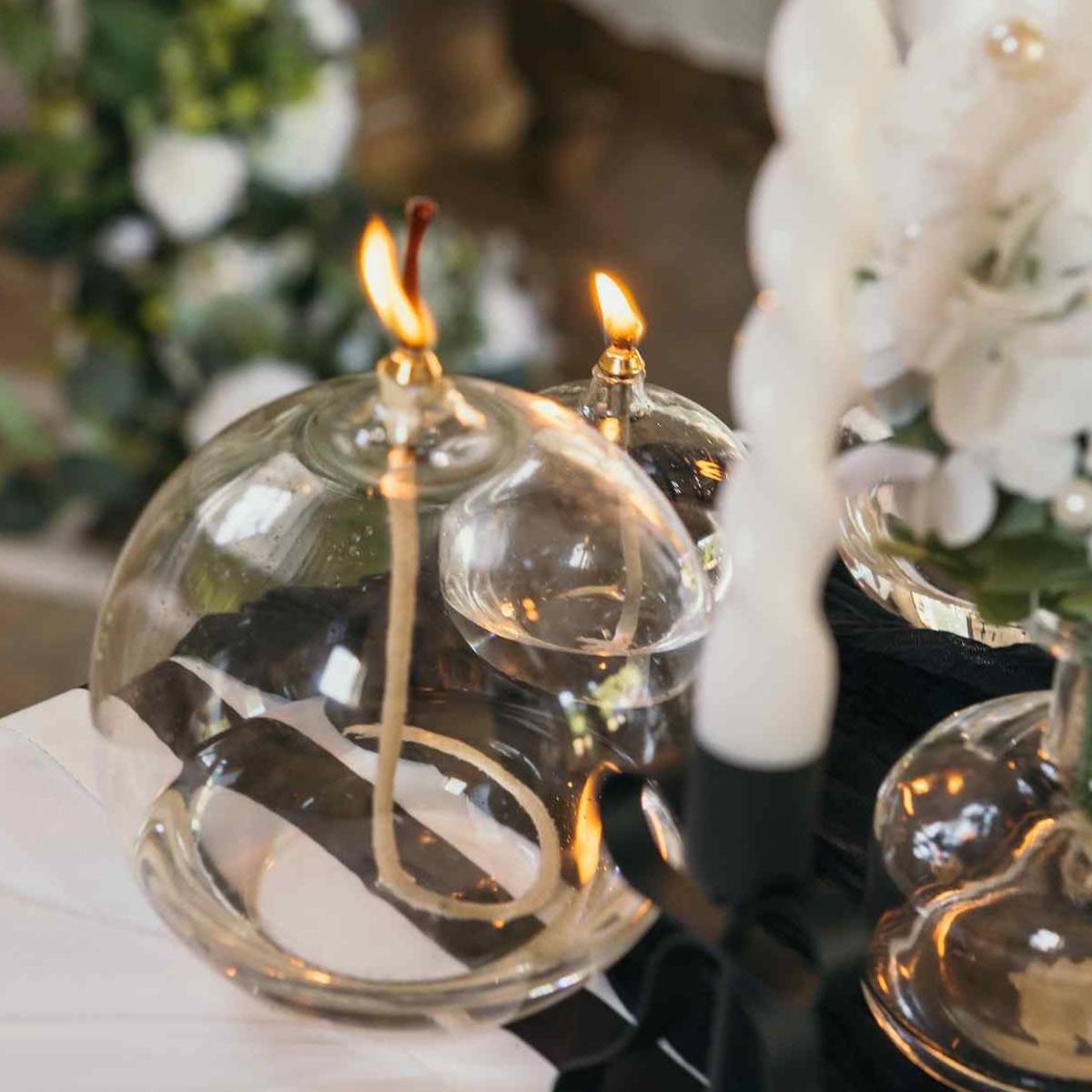 Lampe à Huile en verre transparent.