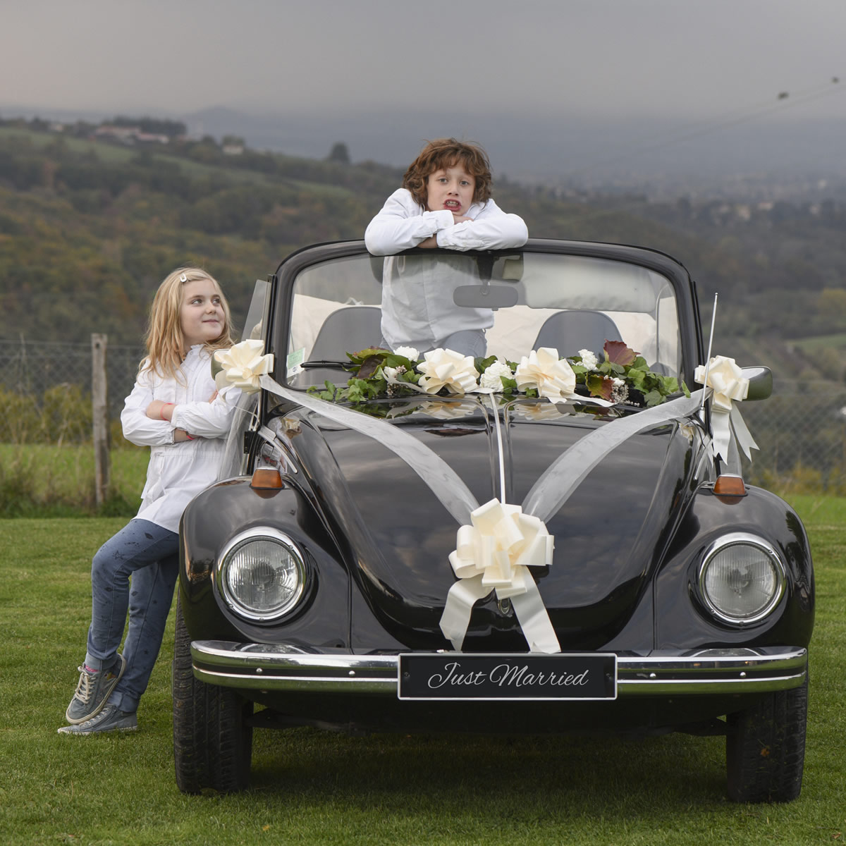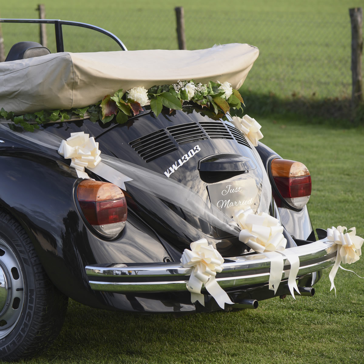 KIT DECO MARIAGE BLANC POUR VOITURE (6 PIECES)