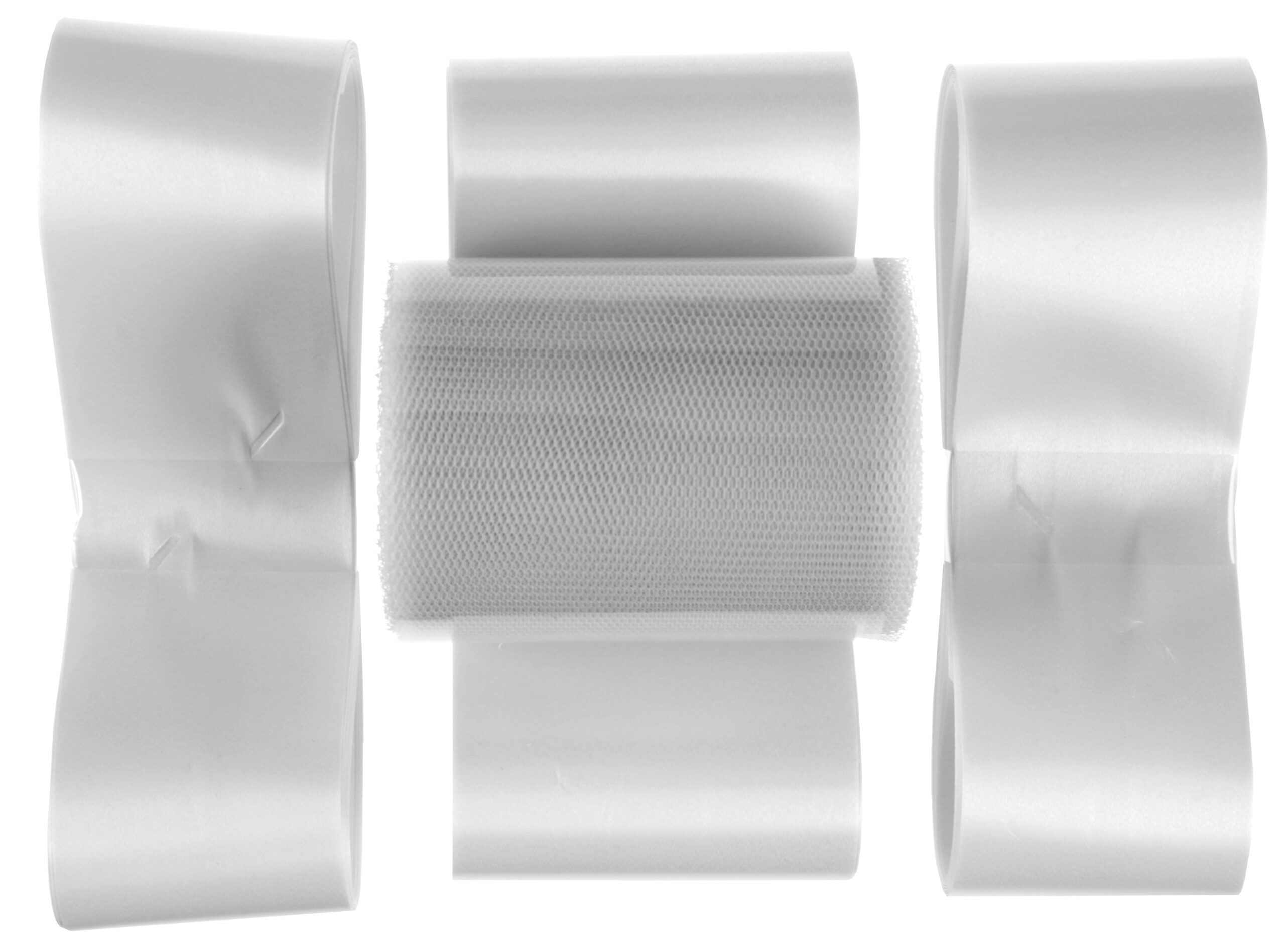 Kit de décoration de voiture blanc composé d’une bobine de tulle de 8cm x 10m, de 4 petits nœuds et d’un grand noeud automatique en polypropylène.