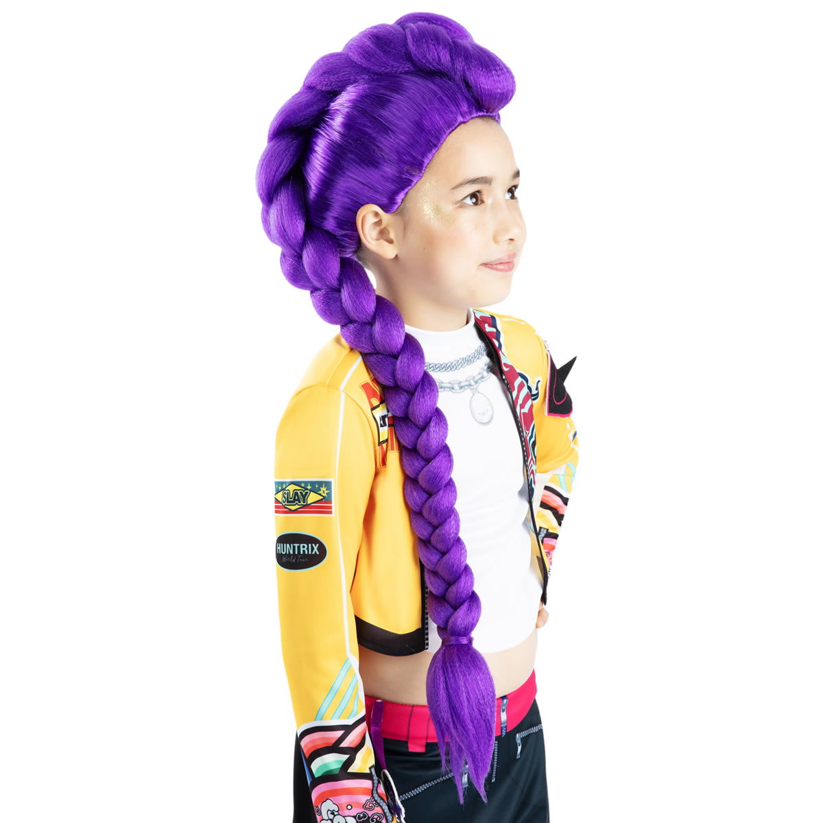 La perruque de Rumi, avec de très longs cheveux violets et une très longue tresse.