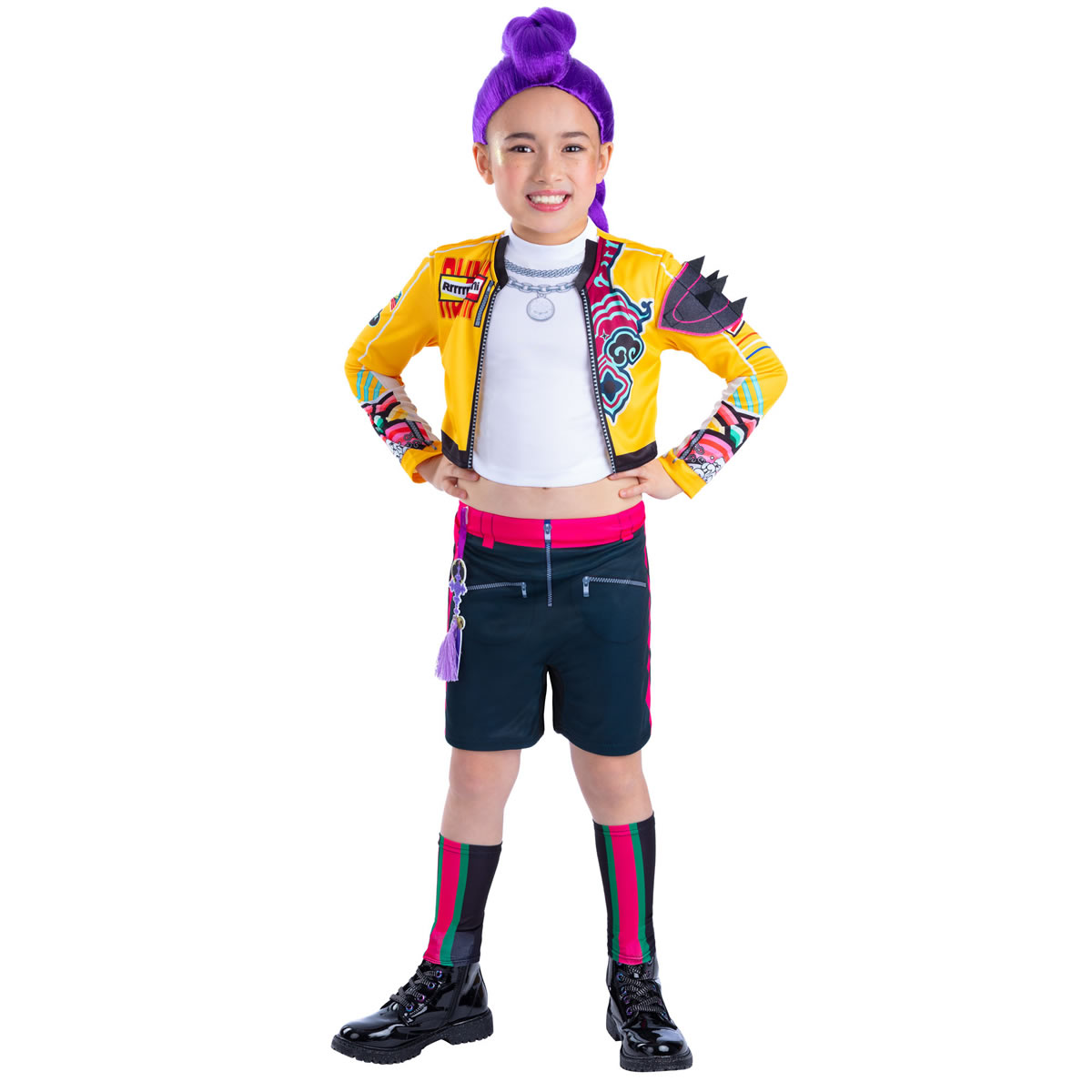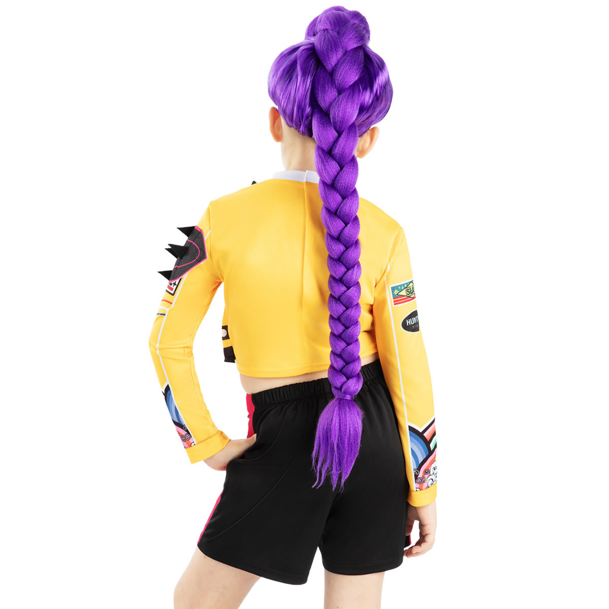 Une veste en jersey imprimée jaune et noirescintillante avec motifs et épaulette en feutrine avec attache velcro.