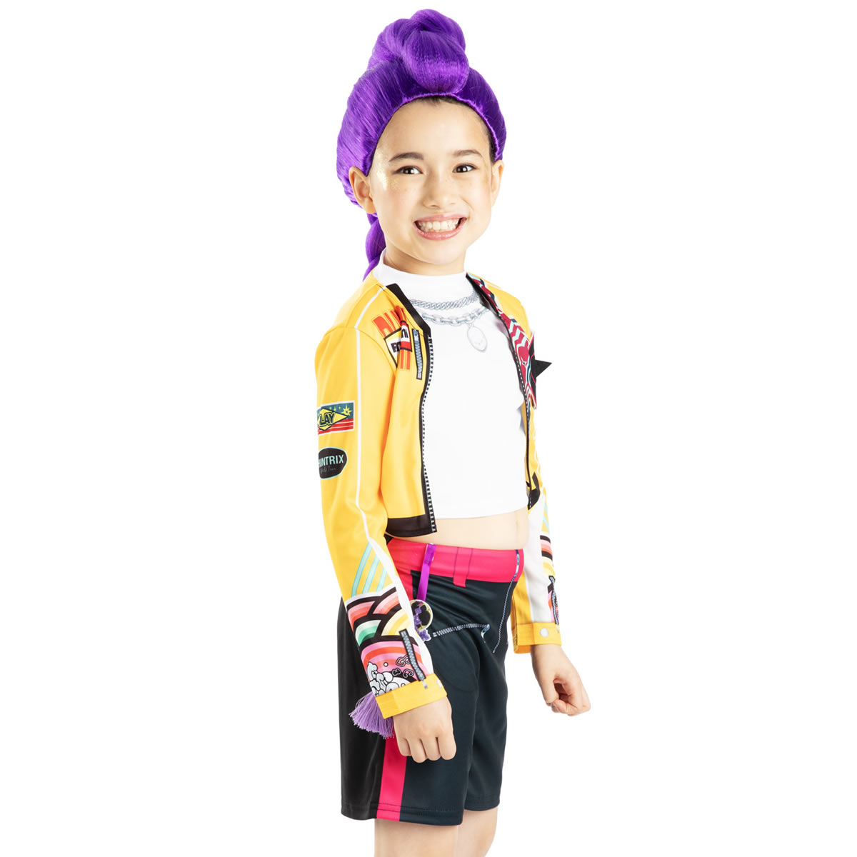 Une veste en jersey imprimée jaune et noirescintillante avec motifs et épaulette en feutrine avec attache velcro.